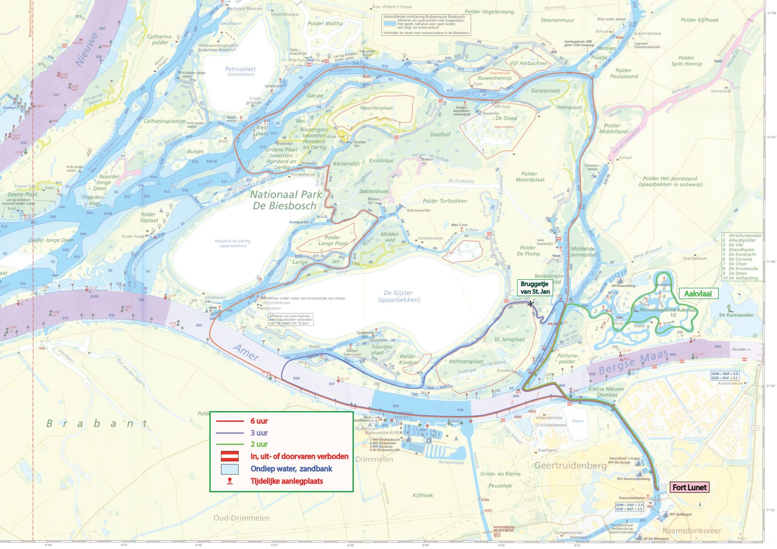 Met de kaart van Nationaal Park De Biesbosch haal je het maximale uit je dag op het water. Dit unieke zoetwatergetijdengebied staat bekend om zijn kronkelende kreken, dichte wilgenbossen en rijke dierenleven. Of je nu een rustige tocht wilt maken of juist actief op verkenning wilt gaan, deze kaart helpt je op weg.